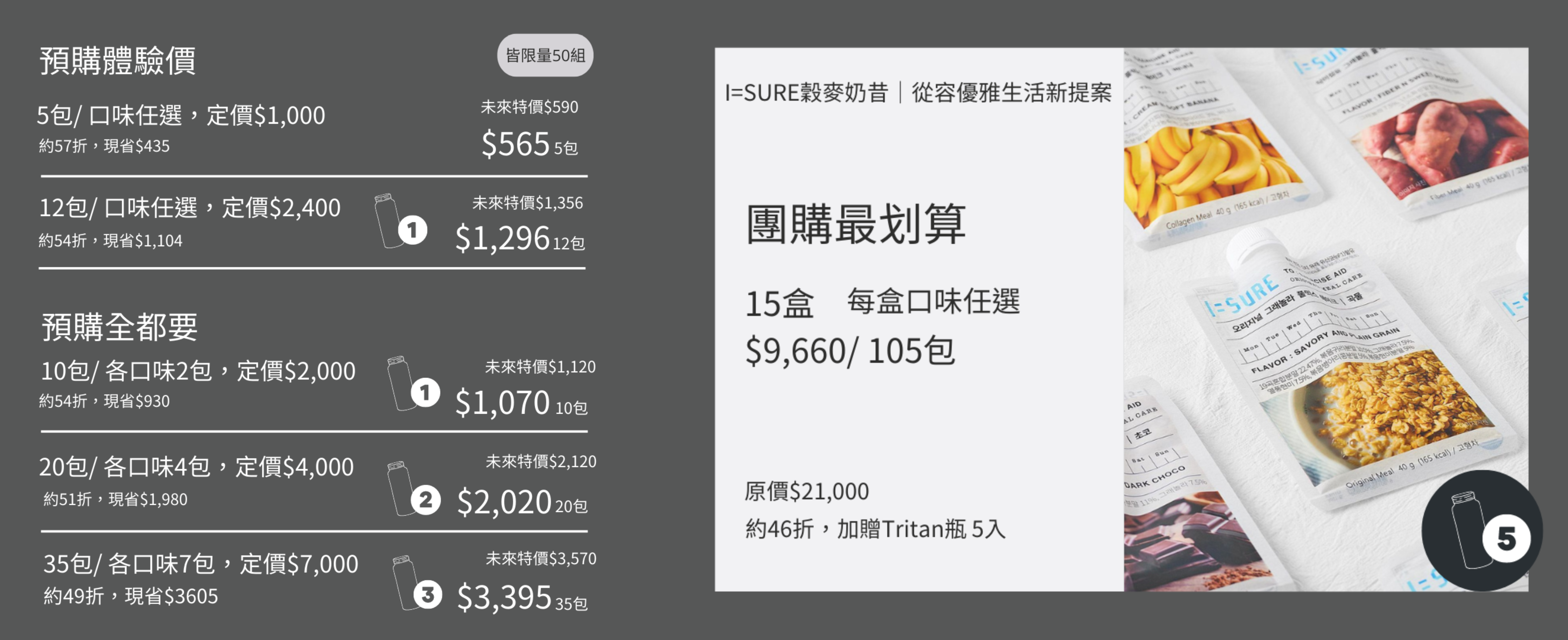 每次都為了湊最高CP值算了老久,看!這就是CP超值的組合,每種口味都拿一盒、又一人拿一個Tritan瓶,每包又都不用$100,超值。