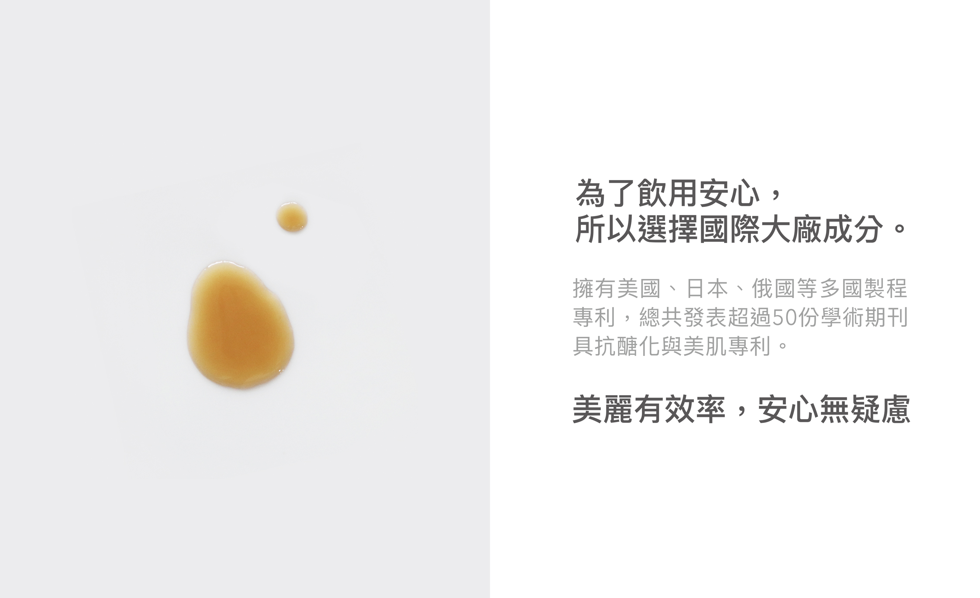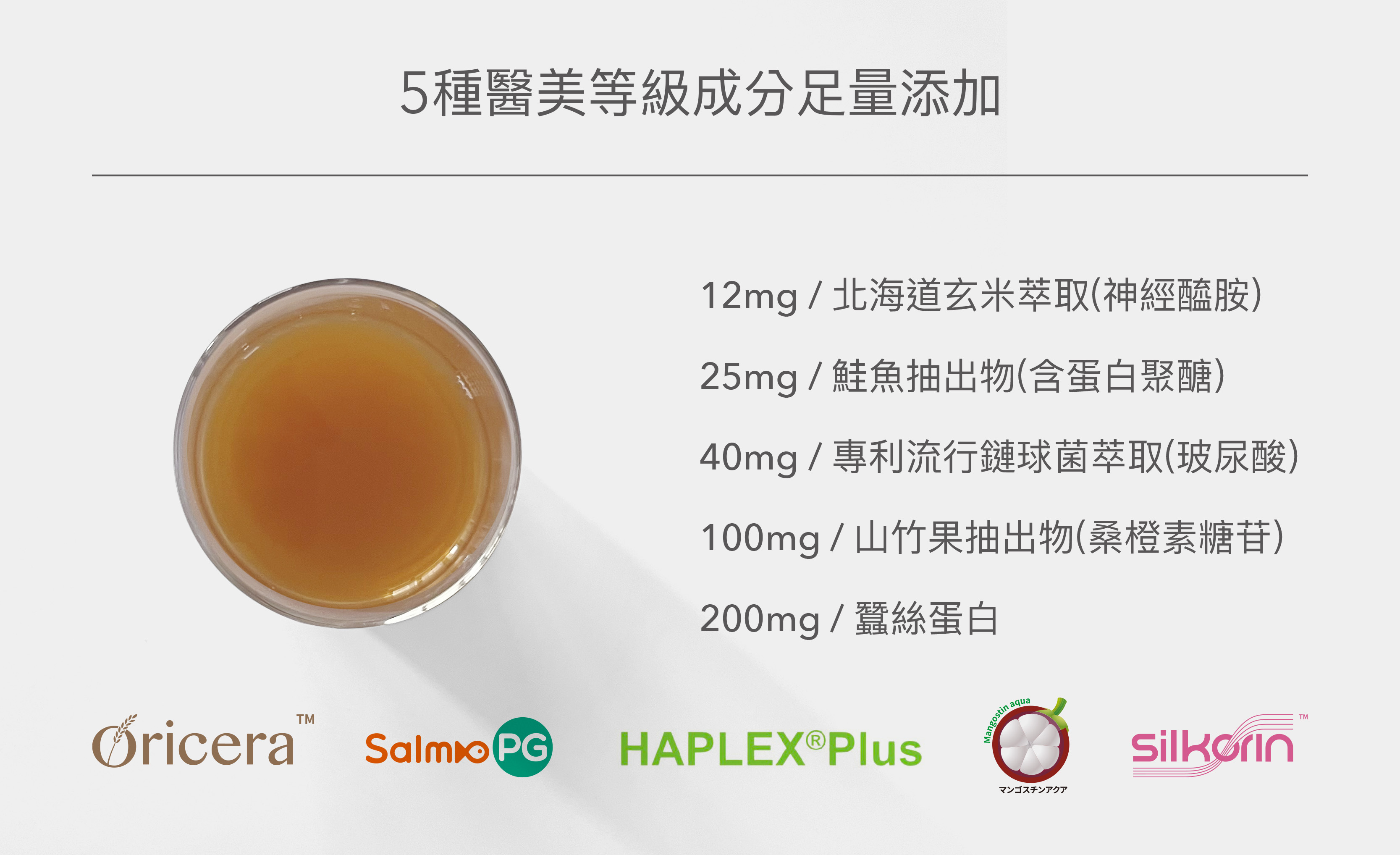 日常保養 1 包 / 日 維持健康肌膚 加強保養 2 包 / 日 輕撫歲月留下的痕跡 長期飲用 搞定躁肌 水潤澎澎有感